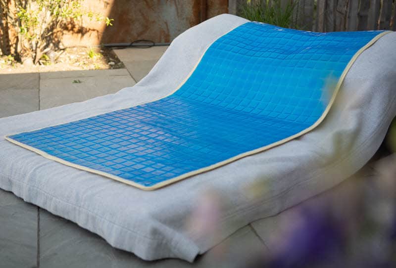 Bilder unserer Refresh Mat Kühlmatten. Luxus pur für zuhause. Perfekt wenn es zu heiss ist! Für den Liegestuhl, auf der Terrasse oder auch im Bett.