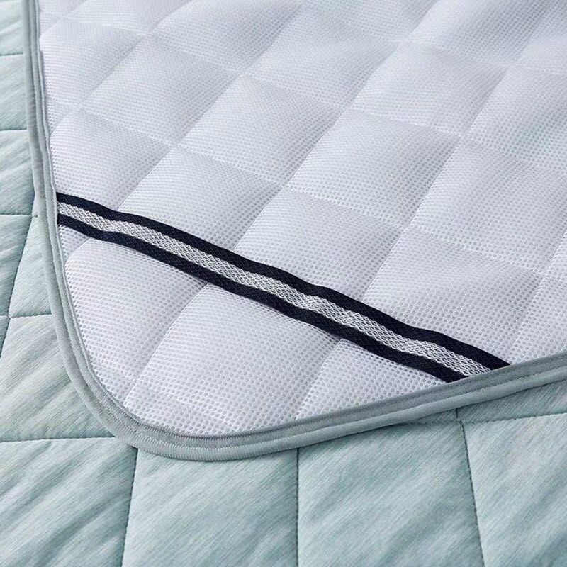 - Stoff auf der oberen Seite: hellblauer Stoff aus spezieller kühlender Polyester-Faser